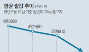 쌀값 폭락 사태가 심상치 않다. 20일 전북 익산·장수·순창 3개 시군 농민들은 쌀값 하락에 항의하며 트랙터로 논의 벼를 갈아엎는 시위를 벌였다. 전국쌀생산자협회는 "쌀값이 20년 전 가격으로 떨어졌던 지난해보다도 10%가량 하락한 상황"이라고 최근 밝혔다. 1996년 80㎏ 쌀 한 가마 가격은 평균 13만6713원으로 이달 15일 농림축산식품부가 집계한 전국 산지 쌀값 13만5544원보다 오히려 높았다. 20년간 전체 소비자물가가 70% 이상 오른 것을 고려하면 쌀값은 크게 내린 셈이다. 정부와 여당은 올해 수매량을 늘리고 쌀 재배면적을 줄이는 쪽으로 정책 방향을 잡았지만 농민들의 반발과 시름은 더해 가고 있다.●다급해진 정부 농림축산식품부는 22일 공공비축미 36만 t을 사들이고 해외 공여용으로도 3만 t을 매입하겠다고 밝혔다. 조곡 40㎏당 4만5000원을 우선 지급하고 민간 미곡종합처리장이 벼를 매입할 수 있도록 정부가 1조2000억 원, 농협이 1조3000억 원을 추가로 지원하기로 했다. 수확기에는 밥쌀용 수입쌀의 입찰 물량과 횟수를 조절해 국내 시장에 미치는 영향을 최소화하기로 했다. 현재 국제무역기구(WTO)가 정한 내국민 대우 원칙 때문에 수입 쌀을 모두 가공용으로 쓸 수는 없고 밥쌀용 쌀을 수입해야 하는 실정이다. 이날 서울 영등포구 의사당대로 국회에서 열린 쌀값 대책 당정간담회에서 김태흠 농해수위 새누리당 간사는 "4만5000원으로 책정된 비축미 우선지급금을 지난해(5만2000원)와 비슷한 수준으로 올려 농민 부담을 덜어 달라"고 정부에 요청했다.●쌀 소비량은 줄고 가격은 하락 쌀값 하락의 원인으로는 갈수록 줄어드는 소비가 꼽힌다. 통계청에 따르면 국민 1인당 쌀 소비량은 1970년 136.4㎏에서 지난해 62.9㎏으로 반 토막이 났다. 이에 따라 지난달 말까지 국내 쌀 재고량은 정부 양곡 175만 t과 민간 양곡 25만 t을 합쳐 총 200만 t으로 사상 최대다. 쌀이 남아돌자 정부는 올해 처음 2012년산 비축미 10만 t을 사료용으로 민간에 판매했다. 2013년부터 올해까지 4년째 풍년이 이어지는 것도 가격 하락의 원인이다. 쌀 생산량은 흉작이었던 2012년 401만 t 이후 지난해까지 매년 420만 t을 넘겼다. 김재수 농림축산식품부 장관은 이날 당정간담회에서 "올해 최종 쌀 수확량이 410만 t에서 420만 t 정도로 추정돼 35만 t 정도 초과될 것으로 예상된다"고 밝혔다. 작년보다 생산량이 조금 줄지만 여전히 풍작이다. 폭염으로 벼 성장시기에 기온이 높아지고 일조량이 늘어 소출이 좋았다. 쌀 가격은 2013년 정점을 찍은 뒤 계속 하락세다. 2013년 17만 원을 넘어섰던 80㎏들이 한 가마의 가격은 이듬해부터 계속 떨어졌다. 올해 9월 들어서는 농민들의 심리적 저지선인 14만 원대까지 무너졌다. 농민들은 울상이다. 경북 예천에서 벼농사를 짓는 김영균 씨(37)는 "농민의 90% 이상은 쌀값 폭락을 걱정하고 있다"면서 "추석 직전 전남에서는 쌀 한 가마가 8만 원대에 거래됐다는 이야기까지 나오면서 걱정이 더해지고 있다"고 말했다.●여러 단계 유통 구조 등 개선해야 산지 쌀 가격이 떨어져도 소비자가 느끼는 가격 변화는 크지 않다. 복잡한 유통구조를 거치며 떨어지지 않는 쌀값이 소비 촉진을 방해하고 있다. 쌀의 유통 과정은 농민-농협·민간 미곡종합처리장(수매)-도매업체(가공 및 유통)-유통업체-소비자 등 5단계를 거친다. 이 과정에서 유통 마진이 붙고, 단계별로 물류비가 추가돼 가격이 상승한다. 농민들은 정부의 매입 물량과 우선지급금이 쌀값을 안정시키기에 턱없이 적다고 주장한다. 이날 서울 대학로에서는 전국농민회총연맹과 전국쌀생산자협회 등 농업인 단체가 '쌀값 대폭락 박근혜 정권 퇴진 전국농민대회'를 열었다. 전국농민회총연맹 이종혁 정책부장은 "36만 t 매입으로는 정부가 쌀값 안정 의지가 없다고 봐야 한다"고 말했다. 새누리당이 21일 추진 계획을 밝힌 '농업진흥지역'(절대농지) 축소도 효과를 거둘지 미지수다. 이와 관련해 당정간담회에서 김 장관은 "진흥지역 농지를 (정부가) 앞장서서 해제하는 건 통일도 대비해야 하고 한번 해제하면 돌릴 수 없기 때문에 보수적이고 제한적으로 해야 한다"고 말했다. 김 장관은 또 "농업진흥지역에는 농업진흥구역과 농업보호구역이 있는데 보호구역은 변경을 쉽게 할 수 있지만 진흥구역은 엄격하게 관리해 왔다"라고 밝혔다.최혜령 기자 herstory@donga.com홍수영 기자 gaea@donga.com}
