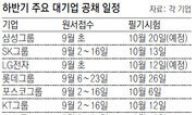 주요 대기업의 하반기(7∼12월) 공채 일정도 일제히 시작된다. 다만 이미 공채를 폐지한 현대자동차그룹에 이어 기업들이 수시 채용을 늘리고 있는 추세인 데다 경기 악화까지 겹쳐 채용 규모는 예년보다 줄어들 것으로 보인다. 1일 각 기업에 따르면 SK그룹, 효성그룹, LS그룹, 포스코, KT 등은 2일부터 입사지원서를 받기 시작한다. CJ그룹은 3일부터 서류 접수를 시작할 예정이다. 삼성그룹은 아직 일정이 확정되지 않았지만 예년처럼 9월 초에 서류를 접수하고 10월에 필기시험을 치르는 기존 틀을 벗어나지 않을 것으로 보인다. LG와 한화도 이달 중 채용 전형이 시작될 전망이다. 삼성 관계자는 “아직 채용 일정이 정해지지 않았지만 예년과 비슷하게 하반기 채용 전형이 진행될 가능성이 높다”고 설명했다. 한편 이날 채용공고 자료를 낸 롯데그룹은 6일부터 올 하반기 신입사원을 모집한다고 밝혔다. 식품, 관광·서비스, 유통, 화학, 건설·제조 등 37개사에서 영업관리, 마케팅, IT, UX, 생산관리, 재무 등 187개 직무를 대상으로 선발한다. 지원자는 우선순위를 선택해 복수 지원이 가능하다. 예를 들어 ‘롯데백화점 MD+롯데마트 영업관리’ 등 서로 다른 회사를 지원해도 된다. ‘롯데호텔 경영지원+롯데호텔 영업마케팅’과 같이 한 개 회사 내 다른 직군 지원도 가능하다. 10월 중순 서류전형 결과를 발표한 다음 최종 합격자 발표는 12월 예정이다.허동준 hungry@donga.com·신희철 기자}