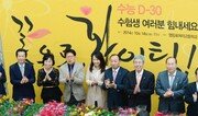 한국무역협회와 코엑스 임직원들이 ‘2014 무역센터 국화페스티벌’이 열린 13일 서울 서초구 영동대로 코엑스 앞에서 내년 5월 이 일대에서 개최될 세계적인 축제 ‘C-페스티벌’의 성공을 기원하는 퍼포먼스를 펼치고 있다. 이날부터 한 달간 열리는 국화페스티벌에는 국화 100만 송이가 선을 보인다. 홍진환 기자 jean@donga.com}