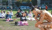 바쁜 뇌 활동을 잠시 멈추고 여유를 가지자는 취지의 ‘멍 때리기’ 대회가 27일 오후 1시 서울시청 앞 서울광장에서 열렸다. 참가자 50명은 몸을 푼 뒤 심박수를 측정해가며 평상심을 유지하는 ‘멍 때리기’ 경쟁을 벌인 끝에 초등학생 김지명 양(9)이 우승을 차지했다. 홍진환 기자 jean@donga.com}