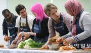 국내에 거주하는 외국인들이 3일 서울 종로구 국립민속박물관에서 열린 ‘외국인 김장 담그기 체험행사’에 참가해 직접 김치를 담그고 있다. 홍진환 기자 jean@donga.com}