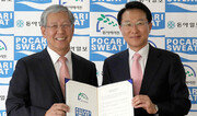 동아일보 최맹호 대표이사 부사장(왼쪽)과 동아오츠카 이원희 대표이사가 동아일보 주최 4개 마라톤대회 공식 음료 후원 및 올해의 선수상과 명예의 전당 사업 후원 협약서에 서명한 뒤 포즈를 취하고 있다. 홍진환 기자 jean@donga.com}