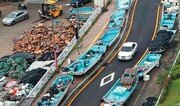 1일 태풍 ‘쁘라삐룬’(태국어로 비의 신)이 북상하자 부산 해운대구 송정어촌계 소속 어민들이 어선을 육지로 옮겨 놓았다. 쁘라삐룬은 2일 밤 제주도를 시작으로 영남지방에 영향을 미친 뒤 4일 오전 동해로 빠져나갈 예정이다. 장마전선과 만나 3일까지 전국에 최대 300mm 이상의 ‘물폭탄’이 쏟아질 것으로 보인다. 부산=박경모 기자 momo@donga.com}