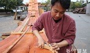 《 18일 오전 전남 목포. 국립해양문화재연구소는 을씨년스러웠다. 갤 거라던 일기예보와 달리, 가느다란 빗줄기가 연신 흩뿌려서일까. 본관 옆에서 목공 장비를 챙기던 한 연구원은 문득 바다를 바라보다 깊게 한숨을 내뱉었다. 하긴 지금 누군들, 뭔들 손에 잡힐까. 2주일 전쯤 정한 취재 약속이었건만 서로가 심란하긴 마찬가지였다. “잘 왔다”며 손을 내밀던 소재구 연구소장도 몇 마디 나눌 틈도 없이 ‘진도 현장’ 상황을 체크하느라 바빴다. 연구소 소속 탐사선 ‘씨뮤즈 호’와 발굴선 ‘누리안 호’가 전날 세월호 사고 현장에 급파됐기 때문이다. 수중문화재 전용선이지만 뭐라도 도울 게 있을까 싶어서였다. 》‘마도 1호선’ 바닥 골격이 세워진 옆 마당은 곧 분주해지기 시작했다. 마도 1호선은 고려시대 조운선(漕運船·정부 곡식을 옮기는 배)으로 2010년 충남 태안군 마도 앞바다에서 일부 선체가 발굴됐다. 함께 발굴된 목간(木簡)을 통해 1208년에 침몰한 사실이 밝혀졌다. 지난달 25일 복원사업이 시작됐는데, 야외작업이라 이날처럼 비가 오면 보통은 일을 멈춘다. 하지만 이날 연구원들은 누구도 쉴 생각을 안했다. 쓱싹쓱싹, 다들 말도 없이 대패 소리만 처연하게 퍼져나갔다. “속이야 뒤숭숭하죠. 다들 자식 키우는 아비 어미고, ‘바다 일’하는데…. 허나 험한 데서 고생하는데 우리라고 쉴 순 없지요. 게다가 이번 복원은 옛사람의 얼을 새로 찾는 일 아닙니까. 조상님들께 ‘피지도 못한 꽃들, 제발 살펴주세요’라고 빌며 못질 하나에도 정성을 쏟을랍니다.”(홍순재 학예연구사) 한반도 끝자락에서 별 주목을 못 받고 있지만, 마도 1호선 복원은 한국 선박 복원사(史)에서 중요한 이정표가 될 사업이다. 1994년 ‘완도선’을 시작으로 연구소는 그간 배 4척을 복원했다. 하지만 추정 하나 없이 100% 수중 발굴한 유물과 문헌기록만을 바탕으로 고려 배를 다시 만드는 건 이번이 처음이다. 당시 방식대로 거의 껍데기만 벗긴 지름 60∼70cm 아름드리 통나무로 배의 뼈대를 삼으며, 나무못으로 잇고 대나무 돛을 올린다. 소 소장은 “공정도 불가피한 상황이 아니면 자귀나 대패, 끌과 같은 전통연장을 주로 사용하고 있다”고 설명했다. 그냥 겉모습만 복원하는 게 아니라 당시 방식대로 바다에 띄워 항해할 수 있게 만드느라 더 세심한 주의가 필요하다. 복원은 준비기간만 2년 넘게 걸렸다. 마도 1호선은 부재 60여 편이 발굴됐으나, 주로 배 밑바닥 위주였다. 이 때문에 나머지 부분은 지금까지 발굴된 다른 고려 배 9척의 형태를 적용했다. 예를 들어 고물비우(船尾材·배꼬리 널판)는 ‘달리도선’과 ‘안좌도선’, 외판(外板·선체 외곽을 이루는 판)은 ‘마도 2, 3호선’을 기반으로 삼았다. 그래도 부족한 건 고려사와 고려사절요, 고려도경 같은 옛 문헌을 참조했다. 최근 ‘신안 보물선의 마지막 대항해’를 출간한 김병근 학예연구사는 “대나무 돛은 고려시대 거울인 ‘황비창천명경(煌丕昌天銘鏡)’에 그려진 배의 생김새를 따왔다”고 설명했다. 마도 1호선은 길이 15.3m, 폭 6.6m의 약 43t급 배로 올해 말 완성을 목표로 한다. 탑승인원은 15∼20명, 곡식은 가마니로 500∼800섬을 실었을 것으로 추정된다. 난관은 남아있다. 무엇보다 나무 구하는 게 어렵다. 고려 배는 휘어진 부분을 굽은 나무를 통째로 썼는데, 한반도 낙엽송(적송) 가운데 맞춤한 걸 찾기가 여간 까다롭지 않다. 연구원들이 강원 산간에서 1년 가까이 발품을 팔아 80%는 구했지만, 아직 더 찾아내야 한다. “마도 1호선의 완성은 단지 고려 선박의 복원에 그치는 게 아닙니다. 이런 제작기술이 차곡차곡 쌓여 선박 복원 학자들의 마지막 꿈을 향해 달려가는 거죠. 최종 꿈이 뭐냐고요? 바로 충무공의 거북선을 복원하는 겁니다. 그날까지 연구와 시행착오는 계속될 겁니다.” (신희권 해양유물연구과장)목포=정양환 기자 ray@donga.com}