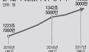 국내 가계부채 규모가 올해 6월 말 기준 1388조 원에 달하는 것으로 집계됐다. 3월에 이어 역대 최고 기록을 또다시 갈아 치웠다. 7, 8월 증가분을 감안하면 가계부채가 사실상 1400조 원을 돌파했다는 분석이 나온다. 23일 한국은행이 발표한 ‘2017년 2분기(4∼6월) 가계신용’에 따르면 국내 가계신용은 전 분기보다 29조2000억 원(2.1%) 늘어난 1388조3000억 원으로 집계됐다. 가계신용이란 포괄적인 가계부채를 일컫는 말이다. 은행, 신용협동조합, 보험사, 대부업체 등 모든 금융사의 대출액(1313조4000억 원)에 결제가 완료되지 않은 신용카드 사용액, 자동차 리스 등으로 나간 대출 등(74조9000억 원)을 합한 것이다. 금융감독원은 7월 금융권 가계대출 금액이 9조5000억 원, 8월 들어선 1∼11일에 2조1700억 원이 증가했다고 최근 발표했다. 이를 단순 합산하면 가계부채는 이미 1400조 원을 넘어선 것으로 추정된다. 한은은 저금리 기조 속에서 부동산 시장 호조가 이어지면서 주택담보대출이 늘어난 게 가계부채 증가 원인이 된 것으로 보고 있다. ‘8·2부동산대책’ 발표 전인 2분기에는 주택담보대출이 6조3000억 원 늘면서 증가폭이 1분기(6000억 원)의 10배에 달했다. 이건혁 gun@donga.com·강유현 기자}