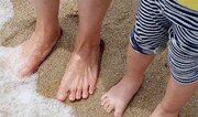 조그만 아이가 태어나 처음으로 바다에 발을 담갔습니다. 엄마의 따뜻한 손을 잡고 파란 바다를 보며, 발을 간지럽히는 파도를 느끼는 중입니다. 그런데 아직은 차가워서 깜짝 놀랐다고 하네요. 건강하게 무럭무럭 자라서 엄마 아빠와 수영도 즐길 날이 어서 오기를. ― 부산 해운대에서 양회성 기자 yohan@donga.com}