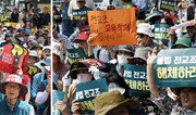전국교직원노동조합(전교조)이 12일 오후 서울 중구 파이낸스센터 빌딩 앞에서 ‘전교조 법외노조 취소를 거부하는 문재인 정부 규탄 전국교사결의대회’ 출정식을 연 뒤 청와대 방향으로 행진하고 있다(왼쪽 사진). 같은 날 전국학부모단체연합은 전교조의 연가투쟁을 비판하며 서울 종로구 광화문시민열린마당 앞에서 맞불집회를 열었다. 양회성 기자 yohan@donga.com·뉴스1}