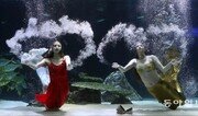 15일 서울 영등포구 여의도 63빌딩 아쿠아플라넷63에서 수중 연기자들이 ‘바다 별 축제’ 공연을 펼치고 있다. 공연은 올해 말까지 계속된다. 양회성 기자 yohan@donga.com}