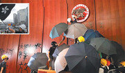 홍콩인의 중국 송환을 허용하는 ‘범죄인 인도법’의 완전 철회와 홍콩 행정수반 캐리 람 행정장관의 퇴진을 요구하는 홍콩의 반중(反中) 시위대 일부가 홍콩 반환 22주년인 1일 홍콩 입법회(국회) 건물 펜스와 유리문을 부수고 들어가 입법회를 점거했다. 이들은 역대 홍콩 행정장관들의 초상화 등 입법회 내부 시설을 훼손하면서 입법회 회의실 내부까지 진입했다. 일부이긴 하나 대체로 평화로운 집회를 이어왔던 시위대가 입법회를 습격해 일부 시설을 파괴하면서 과격화됐다는 지적도 나왔다. 시위대의 입법회 점거가 2014년 75일간 홍콩 도심인 센트럴을 점거한 민주화 시위 ‘우산 혁명’처럼 장기화될 가능성을 배제할 수 없다. 홍콩 사우스차이나모닝포스트(SCMP) 등에 따르면 이날 대부분 검정 옷을 입고 노란 헬멧과 고글, 마스크를 쓴 수백 명의 시위대는 금속 카트와 쇠파이프 등으로 유리문을 부수고 입법회 안으로 들어간 뒤 입법회 내부의 경찰과 대치했다. 입법회 바깥에는 수천 명의 시위대가 몰려들었다. 입법회는 사상 최초로 내부 인원 전체 대피령인 적색경보를 발령했다. SCMP는 홍콩 경찰이 “일부 시위대가 수산화나트륨으로 경찰을 공격했고 오전에는 하수구 세척제로 추정되는 액체를 경찰에 뿌려 경찰 13명이 호흡 곤란과 피부 발진을 호소해 병원으로 옮겨졌다”고 발표했다고 전했다. 이날 오전에도 컨벤션센터로 이어지는 도로를 점거한 시위대와 가스총과 곤봉, 방패로 무장한 홍콩 경찰이 격렬한 몸싸움을 벌였다. 경찰은 최루가스를 쏘며 진압을 시도했다. 시위대와 경찰 간 무력 충돌은 지난달 12일 경찰이 시위대를 강경 진압해 수십 명의 부상자가 발생한 지 19일 만이다. 경찰은 “일부 시위대가 극단적 폭력으로 입법회를 기습하고 공격적인 무기로 유리문을 파괴했다”며 “이를 비판하고 강한 유감을 표시한다”는 성명을 발표했다. 반면 시위대는 “평화적 집회가 (문제 해결에) 소용없는 것으로 나타난 뒤 분출된 것”이라고 주장했다. 야당인 홍콩 민주당 창립자 마틴 리는 “다수 시민은 평화 집회를 원한다”고 지적했다. 이들과 별도로 약 55만 명의 시위대는 이날 오후 빅토리아공원에서 홍콩 정부청사까지 4km를 평화 행진했다. 이날 오전 입법회 인근 게양대에는 홍콩기 옆자리에 있던 중국 국기 오성홍기가 사라진 대신 검은색 홍콩기가 휘날렸다. 시위대가 오성홍기를 내리고 검은 홍콩기를 게양한 것으로 알려졌다. 본래 홍콩기는 빨간색 바탕에 홍콩을 상징하는 ‘홍콩난(바우히니아)’의 하얀색 무늬가 새겨져 있다. 일부 시위대는 이날 홍콩 완차이 컨벤션센터 앞에서 검은 홍콩기를 흔들며 “지금 홍콩 상황을 대변한다”고 주장했다. 이날 홍콩 반환 22주년 기념행사는 22년 만에 최초로 컨벤션센터 실내에서 열렸다. 그간 컨벤션센터 앞 부두에서 화려한 행사가 열린 것과 대조적이다. 2년 전인 2017년 20주년 반환 행사 때는 시진핑(習近平) 중국 국가주석까지 참석했다. 홍콩 정부는 ‘폭우’를 이유로 들었지만 홍콩 내 강한 반중 정서와 이날 대규모 시위를 의식했다는 분석이 많다. 홍콩 경찰 전체 3만 명의 6분의 1에 해당하는 약 5000명의 시위 진압 경찰이 컨벤션센터 주변에 배치됐다. 람 장관은 지난달 18일 인도법 강행에 대해 사과한 뒤 13일 만에 처음으로 공식석상에 등장했다. 그는 이날 약 6분간의 연설에서 “정치적 입장을 넘어 각계각층 시민들과 소통하겠다”고 밝혔다.베이징=윤완준 특파원 zeitung@donga.com}
