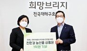 한국농수산식품유통공사(aT)는 16일 신종 코로나바이러스감염증(코로나19) 극복을 위해 1억 원 상당 친환경농산물 상품권을 전국재해구호협회에 전달했다고 밝혔다. 해당 상품권은 공사 임원과 간부진이 반납한 급여로 마련했다.이번 기부는 온라인개학 등으로 급식 식재료 판로가 막힌 친환경농산물 생산 농가를 돕고 소비를 촉진시키는 한편 코로나19로 어려움을 겪고 있는 지역사회 취약계층을 지원하기 위해 이뤄졌다고 aT 측은 설명했다.특히 이번 기부금 재원은 이병호 aT 사장을 비롯한 상임임원들의 4개월치 급여 30%와 자발적으로 임금 반납에 동참한 간부직원들의 급여를 모아 마련했다. 기부한 상품권은 전국재해구호협회를 통해 취약계층에게 전달될 예정이다. 친환경농산물 전문매장인 한 살림과 아이쿱생협, 초록마을 등에서 원하는 상품을 구매할 수 있다.앞서 aT는 코로나19 위기 극복을 위해 쿠팡, 티몬, 요기요 등 소셜커머스 및 배달 서비스 앱과 협업해 친환경농산물 꾸러미를 판매하는 등 농산물 온라인 판로 확대에 힘써왔다. 이밖에 전 임직원들이 자발적으로 모금한 성금과 생활안정용 쌀, 긴급방역 지원, 저소득층 노인 대상 마스크 기부 등 다양한 활동을 이어가고 있다.이병호 aT 사장은 “상호연대와 협력을 통해 코로나19 재난 위기를 극복할 수 있을 것으로 기대한다”며 “특히 어려움을 겪고 있는 농가와 지역사회를 위해 공공기관으로써 사회적 책임과 역할을 다할 것”이라고 말했다.동아닷컴 김민범 기자 mbkim@donga.com}