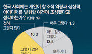 #1. 4월 19일 서울 강남구 삼성동 대기업인 A사 마케팅부서 회의실. 팀장이 속사포처럼 지시사항을 쏟아냈다. 팀원들은 수첩에 받아 적기에 바빴다. 이 회사의 김모 대리(33)는 “창의적인 아이디어가 나오려면 여러 의견이 쏟아져야 하는데 윗사람 의견에 토씨도 달 수 없는 분위기”라며 “침묵하는 게 상책”이라고 털어놨다. #2. 올해 8월 졸업을 앞둔 취업 준비생 양모 씨(23). 소위 명문대에서 전자공학을 전공한 그는 학교 선배가 창업한 벤처회사에서 일하겠다는 뜻을 부모에게 밝혔다가 얼굴만 붉혔다. 양 씨의 부모는 “탄탄한 인생이 보장되는 대기업을 놔두고 굳이 어려운 길을 선택하려 하느냐”며 펄쩍 뛰었다. 결국 양 씨는 ‘대기업 입사 고시’ 준비를 하기로 했다. 박근혜정부가 ‘창조경제’를 내세우고 있지만 한국 사회의 경제·사회·문화 인프라가 창조경제의 걸림돌인 것으로 나타났다. ○ ‘시키는 대로’ 문화가 창의력 막아 21일 동아일보와 국무총리실 산하 경제·인문사회연구회가 국민 1000명을 대상으로 실시한 설문조사에서 젊은이들이 창조적 역량을 계발하지 못하는 이유는 ‘입시 위주의 교육 문화’(51.7%)와 ‘장기적 취업난으로 인해 도전에 소극적인 문화’(26.7%), ‘상명하복의 기업문화’(12.0%) 순으로 많았다. 전문가들은 획일화된 여건이나 제도에서 창조경제의 성장 동력이 약해질 수밖에 없다고 입을 모았다. 이장우 경북대 교수(경영학)는 “창의력은 문제 해결 과정에서 길러지지만 한국은 정답을 맞히는 요령을 기르는 교육 체계“라고 꼬집었다. 이는 이스라엘이 ‘후츠파 정신(대담함)’에 힘입어 창조경제를 꽃피우는 것과 대조적이다. 이스라엘에선 상명하복의 대명사인 군대에서조차 ‘계급장을 떼고’ 자기 의견을 밝히는 문화가 당연시되고 있다. ○ 도전보다 안전 권하는 사회 벤처 기피 문화는 각종 통계로도 나타난다. 2012년 벤처기업 실태조사에서 20, 30대 창업은 2011년 19.5%로 2000년(54.5%)의 반 토막 미만으로 쪼그라들었다. 한 대학교수는 “미국에선 하버드대나 스탠퍼드대 등 상위권 대학 출신의 ‘엘리트 창업’이 적지 않지만 한국은 사회 전체가 젊은이들의 창업을 말리는 분위기가 됐다”고 말했다. 이는 실패를 용인하지 못하는 문화와 무관치 않다. 응답자 중 90.3%는 ‘벤처에 성공하려면 적어도 세 차례 이상 실패해야 할 것’이라고 예상했다. 하지만 응답자의 74.6%는 ‘벤처에 실패한 후 재기하는 게 어렵다’고 답했다. 벤처 창업이 쉽지 않은 풍토도 창조경제의 기를 꺾는 요인으로 꼽힌다. ‘한국이 벤처 창업에 좋은 환경이라고 생각하느냐’는 질문에 응답자 중 46.6%는 ‘그렇지 않다’고 했다. 이들은 벤처 창업이 어려운 이유로 ‘담보 대출 위주의 금융제도’(41.4%)와 ‘인수합병(M&A) 규제’(28.7%)를 꼽았다. 금융계 관계자는 “투자손실이나 부실대출에 대한 금융당국 등의 빡빡한 잣대도 문제”라며 “벤처 투자는 10곳 중 한 곳만 대박이 나도 성공한 것인데 이 기관들은 실패한 아홉 곳의 책임을 묻는다”며 금융지원이 소극적인 이유를 설명했다. 또 한국은 M&A 규제가 심해 구글과 페이스북 등이 유망한 벤처기업을 거액에 인수하며 청년 창업자들에게 희망을 주는 사례를 찾기 힘들다. ○ 창의적 아이디어 받아줄 시장 키워야 창의적인 아이디어가 있어도 사업화할 수 있는 생태계가 취약한 점도 문제로 꼽힌다. 장석인 산업연구원 산업경제연구센터 소장은 “대기업들은 필요한 물품이나 기술을 계열사에서 조달한다”며 “한국은 중소기업이나 벤처기업이 창의적인 아이디어로 도전해볼 시장이 극히 좁다”고 말했다. 유병규 현대경제연구원 경제연구본부장은 “정부가 특정 산업을 지원하고 보호하는 것보다 과감한 규제 완화 등으로 창조경제의 아이템을 소화할 만한 시장을 형성해야 한다”고 말했다. 국내 벤처에 해외 자본의 투자를 이끌어 내거나 벤처의 해외 진출을 육성해야 한다는 제안도 나온다. 김기찬 가톨릭대 교수(경영학)는 “구글 등 잘나가는 외국기업들은 이스라엘 벤처에 투자하며 판매처까지 마련해준다”며 “한국도 해외 교포들을 글로벌 창업의 지원군으로 활용할 만하다”고 말했다. 김유영 기자·세종=유재동 기자 abc@donga.com}