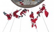 1일 서울 중랑구 용마산 인공 암벽장에서 열린 구세군 자선냄비 행사 발대식에서 산타복을 입은 암벽산악회 회원들이 줄에 매달려 암벽을 오르고 있다. 암벽산악회 회원들은 이달 말까지 북한산 일대에서 자선모금 캠페인을 벌일 계획이다.김재명 기자 base@donga.com}