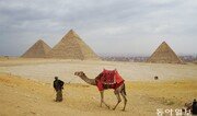 누구나 어렸을 적 이집트 피라미드에 대한 동경을 품곤 한다. 실제 피라미드를 눈앞에 두면 “생각보다 작네”라고 말하는 사람이 많다. 그래도 피라미드와의 첫 대면은 감동이다. 무려 5000년 전에 세워진 거대한 건축물이라는 사실만으로도 경외감이 생긴다. 기자 피라미드는 모두 세 개다. 북쪽 피라미드(사진 왼쪽) 높이가 약 147m로 가장 높지만 지대가 낮아 중앙의 피라미드(높이 143m)보다 낮아 보인다. 김동욱 기자 creating@donga.com}