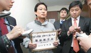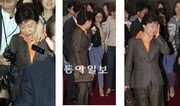10일 오전 국회 본회의장 입구에서 박근혜 전 한나라당 대표의 발언을 녹음하기 위해 한 기자가 휴대전화를 들이대다 떨어뜨리면서 박 전 대표의 얼굴이 굳어지고 있다(왼쪽). 돌아보는 박 전 대표와 멋쩍은 표정의 해당 기자(가운데). 박 전 대표가 괜찮다는 뜻으로 웃어 보이며 자리를 뜨고 있다. 변영욱 기자 cut@donga.com}