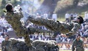 25일 충남 계룡시 계룡대 연병장에서 열린 ‘건군 64주년 국군의 날’ 기념행사에서 특전사 대원들이 특공무술을 펼치고 있다. 올해 국군의 날(10월 1일) 공식 기념행사는 추석 연휴 때문에 26일 열린다. 계룡=변영욱 기자 cut@donga.com}