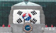 해병대사령부가 28일 서울광장에서 열린 ‘제64주년 서울수복 기념행사’에서 중앙청 태극기 게양을 재연하고 있다. 이날 행사는 6·25전쟁 당시인 1950년 9월 28일의 서울 수복을 기념하기 위해 열렸다. 홍진환 기자 jean@donga.com}