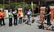 개정 도로교통법 시행을 하루 앞둔 13일 공유 킥보드 업체 뉴런모빌리티와 안전생활실천시민연합, 서울강남경찰서는 서울 강남구 삼성역 인근에서 전동킥보드 안전 주행 캠페인을 벌이고 있습니다.개인형 이동장치(PV) 많이들 타시지요? 다양한 장치들이 있지만 가장 숫자가 많은 것은 역시 전동 킥보드입니다. 공유 업체들도 시장에 뛰어들면서 도심 거리에서 흔히 볼 수 있는 교통수단이 됐습니다. 당연히 안전과 규제에 대한 논의도 계속 됐습니다.이용자에게 헬멧 착용에 대해 알려주고 있네요.국회에서 통과된 개정 도로교통법이 13일부터 시행됩니다. 개정된 내용은 전동킥보드에 대한 것인데요, 앞으로는 킥보드 타실 때 안전헬멧 착용이 의무화(벌금 2만원)됩니다. 이용자는 원동기 장치 자전거 이상 면허(벌금 10만원)도 있어야 합니다. 반드시 혼자 타야 하고 (동승자 탑승시 벌금 4만원), 음주 주행은 당연히 안 됩니다(벌금 10만원, 측정 거부시 13만원). 주행 중엔 전조등을 항시 켜야 합니다. 이 외에도 인도에서의 주행이 금지됩니다. 즉 자전거도로나 차도로만 달려야 합니다.헬멧이 킥보드에 부착된 전동킥보드. 스마트폰으로 기기에서 착탈이 가능하다고 합니다.서울 강남구는 공유 킥보드 업체의 각축장입니다. 한 업체 직원이 트럭으로 수거한 킥보드를 삼성역 앞에 깔아놓고 있습니다.글·사진=신원건 기자 laputa@donga.com}