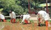 24일 오전 서울 종로구 창덕궁 청의정 앞 논에서 농촌진흥청 직원 등이 옛 농민들이 입던 한복을 차려입고 모내기를 하고 있다. 농촌진흥청은 이날 자체 개발한 ‘해들’이란 품종의 벼를 손수 모내기하는 행사를 열었다. 이는 조선 왕들이 풍년을 기원하며 직접 농사를 지었던 친경례(親耕禮)를 재현했다. 신원건 기자 laputa@donga.com}