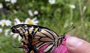 갑작스러운 비바람에 호랑나비가 꽃 위에서 잔뜩 움츠러들었습니다. 나비를 안쓰럽게 여긴 아이가 위로의 손가락을 내밀어 봅니다. ―서울 강동구 상일동에서 신원건 기자 laputa@donga.com}