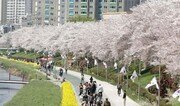 낮 최고기온이 23도까지 올라간 3일 오후 부산 동래구 온천천변에 활짝 핀 유채꽃과 벚꽃 사이로 시민들이 산책을 하고 있다. 박경모 기자 momo@donga.com}
