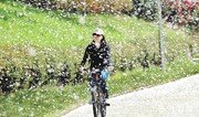 꽃은 지고 봄은 오고… 부산 동래온천천변에서 봄의 절정을 알렸던 벚꽃이 5일 기온이 떨어지고 바람이 불자 함박눈처럼 흩날리고 있다. 부산=박경모 기자 momo@donga.com}