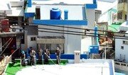 21일 오후 부산 부산진구 호천마을에서 열린 ’기후변화 적응 시범마을 조성사업 기념식’에서 참석자와 자원봉사자들이 주택 옥상에 차열페인트 시공을 하고 있다. 차열페인트는 여름철 50∼60도까지 올라가는 주택 외벽 온도를 40도까지 낮춰준다. 박경모 기자 momo@donga.com}