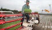 23일 부산 강서구 죽동동 논에서 김경량 씨가 부산 지역 첫 모내기를 하고 있다. 김 씨는 5950m² 논에 운광벼 품종을 심어 추석 전인 8월 하순경에 수확할 예정이다. 부산=박경모 기자 momo@donga.com}