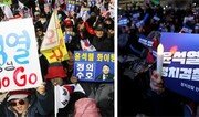 11일 문재인하야범국민투쟁본부 주최로 서울 종로구 광화문광장에서 열린 ‘대한민국 바로 세우기 국민대회’에서 참가자들이 윤석열 검찰총장을 지지하고 있다(왼쪽 사진). 같은 날 광화문촛불연대가 주최한 ‘2020 광화문 탈환 촛불문화제’에서 참가자들이 윤 총장의 사퇴를 촉구하고 있다. 이날 광화문광장에선 경찰이 설치한 펜스를 사이에 두고 두 집회가 열렸다. 송은석 기자 silverstone@donga.com}