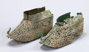 국립나주문화재연구소가 2014년 말 전남 나주시 정촌고분 출토 금동신발을 모사 복원해 3일 공개했다. 정촌고분 1호 돌방무덤에서 발견된 이 금동신발은 용머리 장식 등 화려한 외관이 고스란히 보존돼 큰 관심을 끌었다. 신발이 출토된 정촌 1호분은 5세기 말 마한 수장급의 무덤으로 추정된다. 연구소는 1년 넘게 금동신발에 대한 보존 처리를 실시했으며, 3차원(3D) 스캐닝과 X선 분석 등을 통해 제작 기법을 규명했다. 분석 결과 금동신발은 두께 0.5mm의 구리판에 순도 99%의 금을 입힌 걸로 조사됐다. 바닥과 옆판에 새겨진 연꽃, 도깨비, 새 문양은 금속판을 도려내는 이른바 투조(透彫) 기법이 동원됐다. 연구소는 제작 기법 조사 결과를 토대로 전통 도금기술인 ‘수은 아말감 기법’(금가루를 수은에 섞어 금속 표면에 입히는 방식)으로 복원품을 만들었다. 연구소 전시실에서 복원품을 관람할 수 있다.김상운 기자 sukim@donga.com}