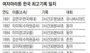 김도연(25·K-water)이 18일 열린 2018 서울국제마라톤 겸 제89회 동아마라톤에서 21년 묵은 여자마라톤 한국 최고기록을 경신하면서 ‘동아마라톤’이 한국 기록의 산실임을 다시 한 번 증명했다. 대한육상연맹 홈페이지에 따르면 1991년부터 지금까지 여자마라톤 한국 최고기록은 7번 나왔다. 이 중 김도연의 기록까지 4개가 동아마라톤에서 나왔다. 1991년 영국 셰필드 유니버시아드에서 김연구(한국체대)가 기록한 2시간37분58초가 연맹 공식 기록의 시작. 이후 이미옥(한국수자원공사)이 1992년 제63회 동아마라톤에서 2시간36분44초를 기록했고 이미경(코오롱)이 1994년 동아국제마라톤에서 2시간35분44초로 새 기록을 세웠다. 강순덕(수자원공사)이 1995년 춘천마라톤에서 기록한 2시간35분37초를 오미자(쌍방울)가 1996년 동아국제마라톤에서 2시간30분09초로 다시 갈아 치웠다. 권은주가 1997년 세운 2시간26분12초는 21년 만에 김도연에 의해 깨졌다. 남자마라톤도 1984년부터 18개의 한국 최고기록이 나왔는데 그중 13개가 동아마라톤에서 나왔다. 동아마라톤은 2000년 서울국제마라톤으로 변신해 국내 개최 최고기록을 계속 바꾸고 있다. 2006년 중국의 저우춘슈가 세운 2시간19분51초는 여자마라톤 국내 개최 최고기록이다. 2012년 ‘서울국제마라톤의 사나이’ 윌슨 로야나에 에루페(케냐)가 2시간5분37초를 기록해 국내 대회 사상 첫 ‘2시간5분대 기록’을 세웠다. 에루페는 2016년에 다시 2시간5분13초로 국내 개최 최고기록을 바꿨다.양종구 기자 yjongk@donga.com}