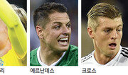 한국이 러시아 월드컵에서 16강에 가기 위해선 득점도 중요하지만 골을 허용하지 않는 게 더 중요하다. F조 최약체로 평가받는 한국으로선 선제골 허용은 곧 패배를 의미할 수 있다. F조 ‘킬러’들을 잘 막아야 하는 이유다. 한국이 1승 상대로 보고 있는 스웨덴에선 ‘에이스’ 에밀 포르스베리(27·라이프치히)를 막아야 한다. 공격형 미드필더로 폭발적인 스피드와 강력한 슈팅, 정교한 패싱력을 갖췄다. 무엇보다 상대의 타이밍을 뺏는 드리블이 일품이다. 수비가 놓치면 그대로 골을 내줄 수 있다. 월드컵 예선 10경기와 플레이오프 2경기에 모두 선발 출전해 4골 1도움을 기록했다. 멕시코의 하비에르 에르난데스(30·웨스트햄)는 말이 필요 없는 월드스타다. 스페인어로 완두콩이란 뜻의 ‘치차리토’란 별명을 지닌 에르난데스는 골 본능이 탁월한 최전방 공격수다. 키는 작지만 위치 선정이 좋고 높은 점프력을 바탕으로 한 헤딩 능력까지 갖췄다. 페널티박스 안에서 어떤 자세로도 골을 잡아낸다. 잉글랜드 프리미어리그 맨체스터 유나이티드와 스페인 프리메라리가 레알 마드리드, 독일 분데스리가 바이엘04, 레버쿠젠 등 유럽 빅리그를 섭렵했다. 세계 최강 ‘전차군단’ 독일엔 공격 자원이 많다. 그중 ‘패스 마스터’로 불리며 세계 최고의 패싱력을 자랑하는 토니 크로스(28·레알 마드리드)는 경계 대상 1호다. 어린 시절부터 천재 미드필더로 불린 그는 90% 이상의 패스 성공률을 자랑한다. 여기에 왕성한 활동력에 수비 및 슈팅 능력까지 갖췄다. 국제축구연맹(FIFA) 올해의 베스트11에 3번 선정됐고 2014 브라질 월드컵 우승 주역으로 활약했다. 그를 놓치면 많은 골을 내줄 수 있다. 양종구 기자 yjongk@donga.com}