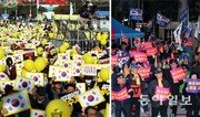 조국 전 법무부 장관의 부인 정경심 동양대 교수가 구속된 뒤 첫 주말인 26일 서울 여의도에서는 고위공직자범죄수사처(공수처) 설치 등을 둘러싼 찬반 집회가 열렸다. ‘검찰개혁 사법적폐청산 범국민시민연대’는 이날 오후 여의대로에서 ‘제11차 촛불문화제’를 열고 검찰 개혁과 공수처 설치 등을 촉구했다(왼쪽 사진). 이날 보수 단체인 자유연대는 여의도 국회 앞에서 집회를 열고 ‘공수처 반대’와 ‘문재인 탄핵’ 등을 외쳤다.뉴시스·김재명 기자 base@donga.com}