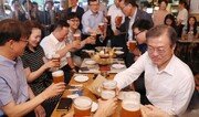 직장인들은 하루 일과를 마치고 시원한 맥주 한 잔 하며 스트레스를 풀곤 한다. 술잔을 빌어 허심탄회한 이야기를 나누며 쌓인 오해를 풀고 단합을 하기도 한다. 문재인 대통령은 대선 전인 2017년 4월 당내 대선후보 경선주자들과 화합을 다짐하며 ‘소맥(소주+맥주)’ 하는 모습을 공개했다. 당선 직후인 7월에는 청와대 상춘재에서 기업인 간담회를 열며 직접 수제맥주를 따르는 모습을 보여줬다. 지난해에는 퇴근시간 광화문 인근 호프집을 깜짝 방문해 청년 구직자와 아파트 경비원, 식당 주인 등과 이야기를 나누기도 했다. 국회에서는 지난 5월 더불어민주당 이인영, 자유한국당 나경원, 바른미래당 오신환 등 여야3당 원내대표가 “국회 정상화”를 외치며 여의도에서 호프미팅을 하기도 했다. 청와대에서 문대통령과 맥주잔을 기울였던 박용만 대한상의 회장은 2017년과 지난 9월 김주영 한국노총위원장과 두차례 호프미팅을 했다. 홍준표 전 한나라당 대표는 2011년 대표시절 마포의 한 호프집에서 대학생들과 호프미팅을 가졌다. 이처럼 호프미팅은 새로 시작하거나 관계가 어려운 사람들과 마음놓고 이야기 할 수 있는 자리가 된다는 점에서 긍정적이다. 다만 보여주기가 아닌 진정한 소통의 자리가 되기를 바라본다.PS: 5일 저녁 박영선 중소벤처기업부 장관과 박용만 대한상의 회장, 스타트업 대표들이 종로구 부암동에서 ‘치맥(치킨+맥주)’자리를 갖는다. 이 자리에서 진심어린 이야기가 오가길 바라본다. 김재명 기자 base@donga.com}