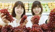 21일 농협하나로클럽 서울 양재점에서 농협유통 직원들이 씨 없는 ‘델라웨어 포도’를 들어 보이고 있다. 국내 비닐하우스에서 재배되는 델라웨어 포도는 일반 품종보다 당도가 높고 씨가 없는 것이 특징이다. 홍진환 기자 jean@donga.com}