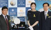 한국조폐공사가 제조한 피겨스케이팅 국가대표 김연아 선수(오른쪽에서 두 번째)의 은퇴 기념 메달이 28일 서울 마포구 창전동 조폐공사 제품홍보관에서 공개됐다. 메달 수익금은 세월호 참사 희생자를 위해 쓰일 예정이다. 홍진환 기자 jean@donga.com}