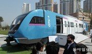 20일 국토교통부가 경기 화성시 오산동 여울공원에서 처음으로 공개한 수도권광역급행철도(GTX) A노선 열차 실물 모형의 외관(위 사진)과 내부를 제작업체 관계자와 취재진 등이 둘러보고 있다. 열차 모형은 GTX A노선을 따라 자리를 옮겨 서울 강남구 수서역 주차장, 경기 고양시 킨텍스 근처 문화공원 등에서 차례대로 다음 달 6일까지 전시될 예정이다. 화성=신원건 기자 laputa@donga.com}