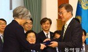 오늘의 정가 말말말(6월 21일)◆“한국이 더 크고 많은 역할을 해야 한다는 점을 강조하고 싶다.” (문재인 대통령, 미국 워싱턴포스트와의 인터뷰에서 북핵 해결 과정을 한국이 주도해야 한다며)◆“학술회의에 가서 얘기한 걸 갖고 왜 이 모양이냐.” (문정인 외교통일안보 대통령 특보, 미국 워싱턴에서 열린 세미나에서 “북한이 핵·미사일 활동을 중단하면 미국의 한반도 전략자산과 한미 연합군사훈련을 축소할 수 있다”는 발언이 논란이 된 뒤 인천국제공항을 통해 귀국하는 자리에서 불만을 표시하며)◆“시장과 국민들께 경제팀이 한 목소리를 내고, 예측가능하다는 것을 보여야 한다.” (김동연 경제부총리 겸 기획재정부 장관, 정부종합청사 직무실에서 장하성 청와대 정책실장, 김상조 공정거래위원장과 첫 회동 시작 전 모두발언에서)◆“몰타가 아니라도 모든 나라, 변방의 듣지도 보지도 못한 곳이라도 괜찮으니 빨리 얻을 수 있는 것으로 해 달라. 지금은 돈이 문제가 아니다.” (정유라 씨, 독일 내 재산관리인 역할을 한 것으로 알려진 데이비드 윤 씨에게 보낸 편지 내용을 검찰이 정 씨의 영장실질심사 과정에서 공개한 내용 중 일부) ◆“죄송하다. 성실히 조사에 임하겠다.” (‘호식이 두마리 치킨’ 최호식 전 회장, 20대 여직원을 성추행 한 혐의로 경찰에 출석한 자리에서)◆“오토에게 일어난 일은 완전히 치욕스러운 일이다. 절대, 절대 일어나서는 안 된다.” (도널드 트럼프 대통령, 북한에 억류됐다가 혼수상태로 석방된 미국인 오토 웜비어가 사망한 것에 대해 전날에 이어 언급하며) 정미경 기자 mickey@donga.com}
