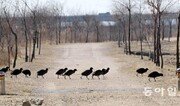 13일 한파로 낙동강이 5년 만에 꽁꽁 얼어붙자 오리 떼들이 먹이를 찾아 부산 강서생태공원 둔치로 올라오고 있다. 박경모 기자 momo@donga.com}