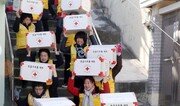 13일 오후 부산 동구 수정동을 찾은 부산 적십자사 자원봉사자들이 밀가루 등이 담긴 응급구호품 박스를 머리에 이고 내려오고 있다. 홀몸 노인과 저소득층 및 이주민 가정을 비롯한 1200가구에 이들 구호품을 전달했다. 부산=박경모 기자 momo@donga.com}