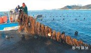 4일 부산 기장군 대변항 앞바다에서 어민들이 미역을 채취하고 있다. 4월까지 출하되는 기장미역은 부드러운 맛에 영양도 풍부해 옛날 임금님 수라상에 올랐던 명품으로 알려져 인기가 많다. 박경모 기자 momo@donga.com}