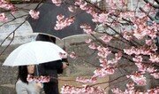 15일 부산 수영구 배화학교 교문 옆에 활짝 핀 벚꽃 아래로 우산을 받쳐 든 시민들이 걷고 있다. 부산 등 영남과 호남에는 16일 오전까지 비가 내릴 것으로 보인다. 주말에는 전국이 대체로 맑고 포근한 가운데 구름이 다소 낄 것으로 보인다. 부산=박경모 기자 momo@donga.com}