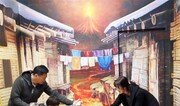 18일 부산 중구 남포동 영화체험박물관 2층 트릭아이 미술관을 찾은 한 가족이 화산 폭발 장면을 배경으로 기념사진을 찍고 있다. 트릭아이는 2차원 그림을 3차원 입체로 착각하게 하는 그림이다. 박경모 기자 momo@donga.com}