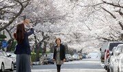 28일 부산의 낮 최고기온이 20도를 넘는 등 포근한 날씨를 보였다. 이날 부산 수영구의 한 아파트 도로에 벚꽃이 활짝 피면서 벚꽃터널을 만들자 관광객들이 사진을 찍는 등 봄기운을 만끽했다. 부산=박경모 기자 momo@donga.com}