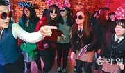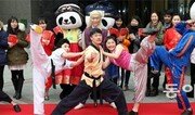 뮤지컬 ‘점프’ 공연단이 10일 서울 중구 소공로 신세계백화점 본점 광장에서 무술이 가미된 공연 퍼포먼스를 중국인 관광객(遊客·유커)에게 소개하고 있다. 유통·관광업계는 중국 설 명절인 춘제 연휴(18∼24일)를 맞아 약 13만 명의 중국인 관광객이 한국을 찾을 것으로 전망하고 있다. 최혁중 기자 sajinman@donga.com}