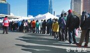 희망찬 새해에도 무료급식을 기다리는 줄은 길기만 하다. 대한적십자사 임직원들이 2일 서울역광장에서 떡국과 방한복을 나눠주는 봉사활동으로 시무식을 대신하자 노숙인과 홀로 사는 노인 등 500여 명이 몰려 길게 줄을 서고 있다.최혁중 기자 sajinman@donga.com}