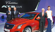 세르지오 호샤 한국GM 사장(오른쪽에서 두 번째)과 장재준 지엠코리아 사장(왼쪽)이 30일 서울 서초구 가빛섬에서 다음 달 초부터 판매할 ‘캐딜락 ATS 쿠페’를 선보이고 있다. 가격은 부가세를 포함해 5300만 원이다. 최혁중 기자 sajinman@donga.com}