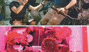 “상추로 건배!” “정말 맛있고 싱싱하다.” 10일 우주 공간에서 난데없는 상추 파티가 벌어졌다. 미국 항공우주국(NASA)이 홈페이지를 통해 생중계한 화면 속에서 우주인 스콧 켈리, 젤 린드그린, 유이 기미야(油井龜美也)는 상추에 발사믹 식초와 올리브 오일을 곁들여 먹으며 연신 “맛있다”고 감탄했다. 우주인들이 우주에서 직접 기른 채소를 수확해 먹는 모습이 공개된 것은 처음으로, NASA는 “발광다이오드(LED)가 태양광을 대신하는 수경재배시스템 ‘베지(Veggie)’를 이용해 채소를 재배할 수 있었다”며 “향후 우주 공간에서 자급자족과 관련한 중요한 진전을 이뤄 냈다”고 밝혔다. 우주인들이 시식한 상추는 지난달 8일부터 재배하기 시작했다. 장치 안의 상추는 빨강·파랑·녹색 LED가 뒤섞여 보라색으로 보인다. NASA는 지난해 5월에도 상추 재배에 성공한 뒤 같은 해 10월 이 상추를 지상으로 보내 유해물질 함유 등에 대한 조사를 진행했고, 섭취해도 문제없다는 결론을 얻었다. NASA는 “우주에서의 작물 재배는 우주인의 감성에도 도움이 되며 우주 방사선의 악영향을 줄이는 등 장점이 있다”고 전했다.이설 기자 snow@donga.com}