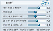 전문가들은 취임 후 2년 반 동안 박근혜 대통령이 정치 분야에서 평균에 못 미치는 성과를 거뒀다고 평가(10점 만점 기준 4.8점)했다. 국정 과제 등을 진정성 있게 추진하기 위해 노력한 것은 인정하지만 가시적 성과를 내지는 못했다는 지적이 나왔다.○ “국정 과제 설정과 비전 제시 능력 평균 이상” 정치 분야 평가가 대체로 부진했지만 ‘국정 과제 설정 및 추진 능력’ 분야와 ‘메시지 관리 및 비전 제시 능력’ 분야에서는 평균 점수를 웃돌았다. 국무회의나 수석비서관 회의 등을 통해 정부가 중점 추진하려는 과제에 대한 명확한 비전을 제시하고 뚝심 있게 추진해 나가고 있다는 점에 대해서 후한 평가를 내린 셈. 김용철 부산대 교수는 “소홀한 분야 없이 정상적으로 국정 과제 목표가 제대로 정립됐다”면서 “지금은 국민에게 희망을 가져다주지는 못하고 있지만 앞으로 2년 반 동안 열심히 추진하면 비전 제시에 걸맞은 성과가 나올 수 있다”고 전망했다. 하지만 ‘당청 관계와 대야(對野) 관계 등에 대한 박 대통령의 정치적 조정 능력’은 해결해야 할 문제점으로 지적됐다. 새누리당 유승민 전 원내대표의 사퇴 파동과 관련해 박명호 동국대 교수는 “대통령이 살아 있는 권력이라는 점을 입증했을지는 몰라도 여권에 초래된 분란에 대해 최종적인 정치적 책임을 져야 한다는 점에서 결국에는 마이너스가 된 것”이라고 봤다.○ “국민 통합 구체적 성과 없어” ‘대국민 소통 및 국민 통합 노력’과 ‘위기 대응 능력’에 대한 평점은 4.2점으로 정치 관련 5개 분야에서 가장 낮은 점수를 받았다. 박원호 서울대 교수는 “대통령은 자신의 지지자들인 보수층에만 지속적으로 메시지를 던지고 있다”면서 “(2012년 12월) 당선 당시와 비교해 보면 국민은 더 갈라져 있고, 양극화됐다. 대통령으로서 직무 유기”라고 혹독한 평가를 했다. 윤종빈 명지대 교수도 “국정 과제를 적극적으로 추진했지만 지나치게 원칙을 강조하면서 소통에서 경직됐다는 모습을 보여 주게 됐다”고 말했다. 전문가들은 지난해 4월 세월호 참사 이후 국가 안전이 강조됐지만 올 6월 메르스(MERS·중동호흡기증후군) 사태가 발생했을 때 초동 대응에 우왕좌왕하는 등 문제점을 드러냈다는 점을 꼬집었다. 이내영 고려대 교수는 “위기가 발생할 때마다 정부는 책임지지 않았고, 컨트롤타워도 불분명했다”며 “중심을 잡고 챙겨야 할 대통령은 반응이 느렸고, 책임을 전가하려는 모습도 문제였다”고 했다.○ “신바람 국정 운영 해야” 양승함 연세대 교수는 “지금 국가가 대통령 혼자의 판단에 의존하고 있다”면서 “대통령은 (관료들에게 권한을) 위임하고 자율성을 줌으로써 각자 책임감을 갖고 신바람 나게 국정 운영을 하도록 해야 한다”고 제안했다. 윤평중 한신대 교수는 “권위주의적인 인치(人治)를 절제하고 민주국가 시스템에 의한 협치(協治)를 확대하는 내용으로 패러다임을 전환할 필요가 있다”며 “대통령의 권위주의적 독주가 아니라 관료들의 책임감과 시민의 자발적 동의 등 국민과 함께 가는 정치를 해야 한다”고 강조했다.고성호 sungho@donga.com·홍수영 기자}