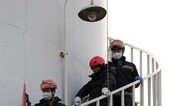 고용승계와 노동조합 활동 보장 등을 요구하며 서울 양천구 목동 열병합발전소 굴뚝에 올라 426일간 농성해 온 파인텍 노조원 박준호 씨(가운데)가 11일 오후 구급대원의 도움을 받으며 지상으로 내려오고 있다. 이날 파인텍 노사는 교섭 타결을 봤다. 회사 측은 노조가 고용승계를 요구해 온 노동자들에 대해 1월부터 최소 3년간 고용을 보장하기로 했고 노조는 농성을 중단하기로 했다. 양회성 기자 yohan@donga.com}