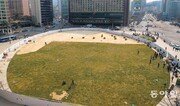 19일 서울 중구 서울광장에 잔디가 깔리고 있다. 서울시는 지난겨울 스케이트장으로 쓰이며 많이 훼손된 잔디를 걷어내고 20일까지 새 잔디를 심는다. 약 한 달간 잔디가 뿌리를 내리도록 서울광장 출입을 막은 뒤 다음 달 27일 일반인에게 개방할 예정이다. 양회성 기자 yohan@donga.com}